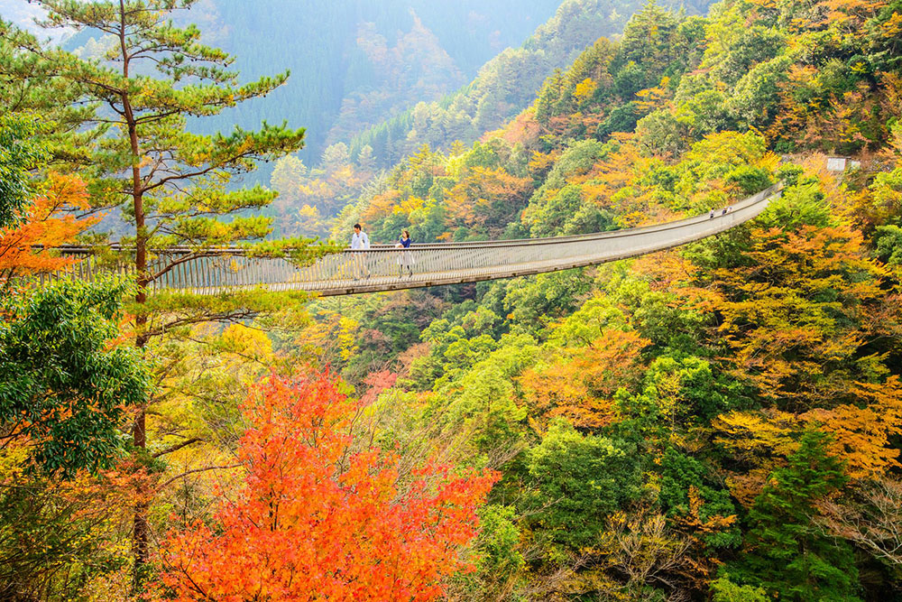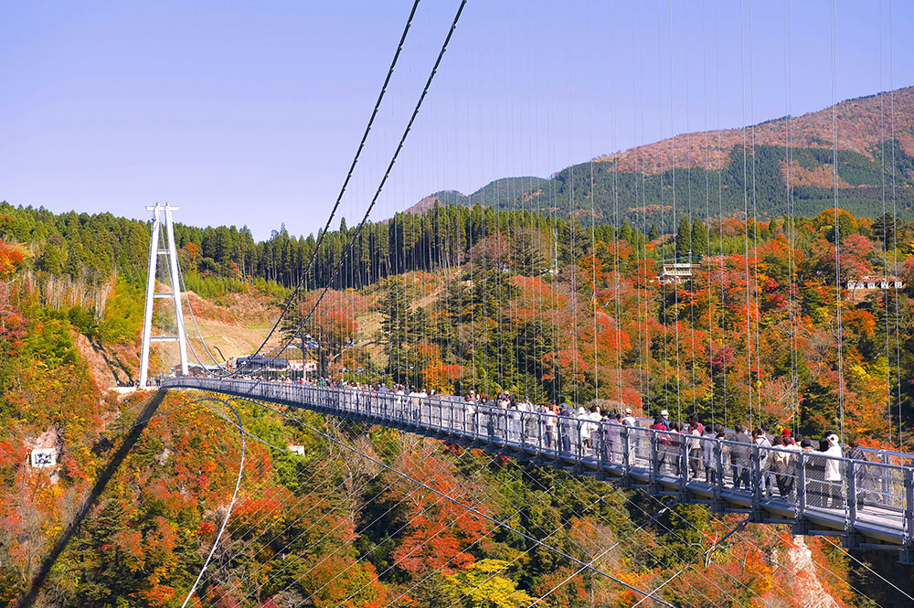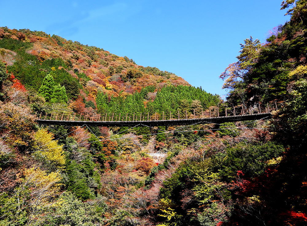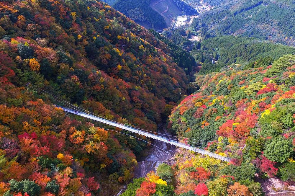 全長390mの吊り橋から満山紅葉の錦絵を満喫