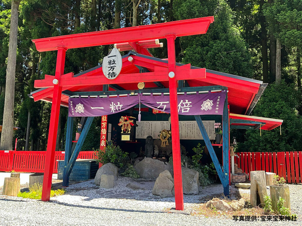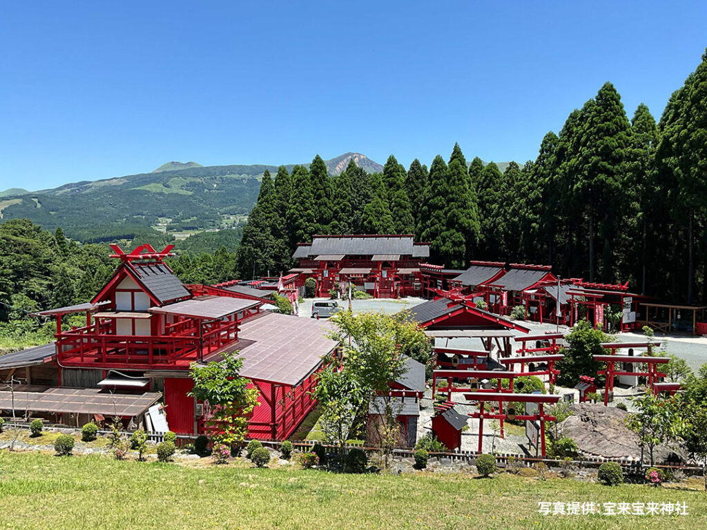 阿蘇の山奥、なんともパワーがもらえそうな赤い神殿を前に、心を込めて「宝来宝来(ホギホギ)」と念じれば、きっとあなたにも素敵な宝が舞い降りるはず。