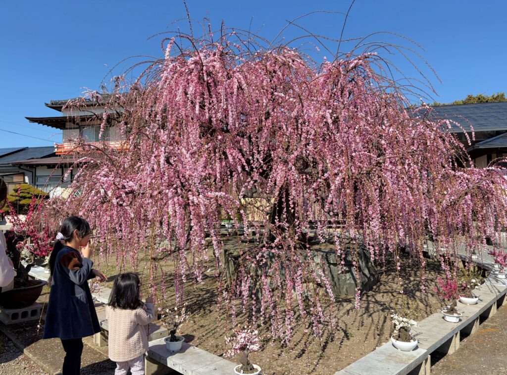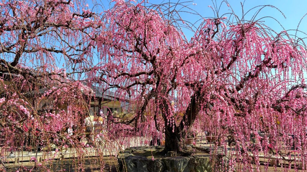 ここは最高のフォトスポット。和室の中から、この大しだれ梅を眺めるのも良し。