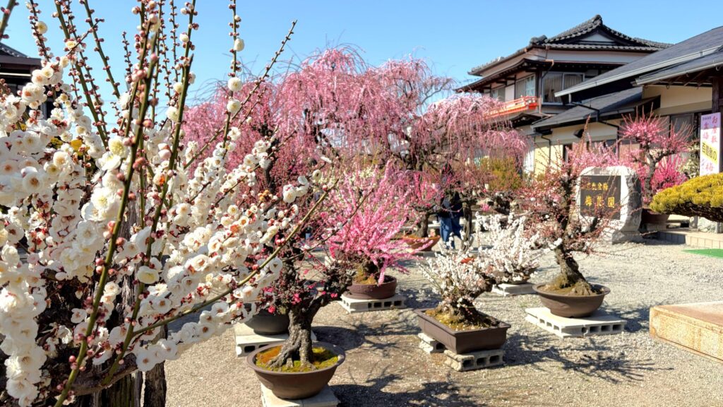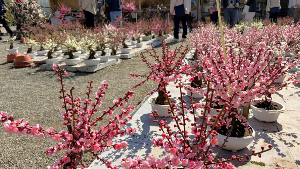 鑑賞ルートの最後には、梅の盆栽(鉢植え)の即売会も開催されています。 「こんなに綺麗な梅を、自分の家でも育ててみたい」 そんな気持ちに応えるように、初心者でも育てやすい小さな鉢から、本格的なものまで多数ラインナップ。